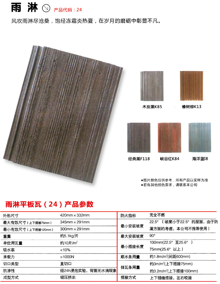 水泥瓦由波特蘭水泥、黃沙、水和漆料做成。用丙烯酸酯做為密閉性防護(hù)膜在其表層勻稱的鍍層,瓦塊使用壽命能夠長達(dá)50年乃至更長,水泥瓦有優(yōu)良的密實(shí)度性和使用性能,因此能夠在嚴(yán)寒的地域應(yīng)用。也不會因凍潔而危害瓷磚的構(gòu)造。屋頂上面有一條專業(yè)的毛毯,用于降雪,避免雪從屋頂?shù)舻降孛嫔?。每片屋瓦下邊都是有一個純天然氣襄。當(dāng)瓷磚因溫度轉(zhuǎn)變而澎漲收攏時,能夠恰當(dāng)調(diào)節(jié),使冰壩盡量自然通風(fēng)。